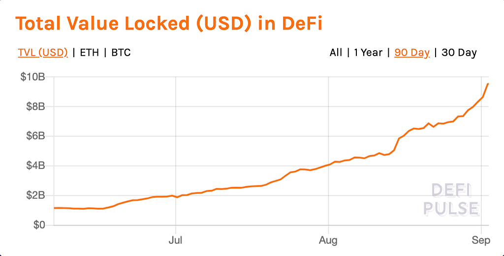 According to the last Binance Report, DeFi sector continued its parabolic run in August, as the Total Value Locked (TVL) in the ecosystem surpassed $9 billion. From our point of view, it is the new inflatable ball for the market.