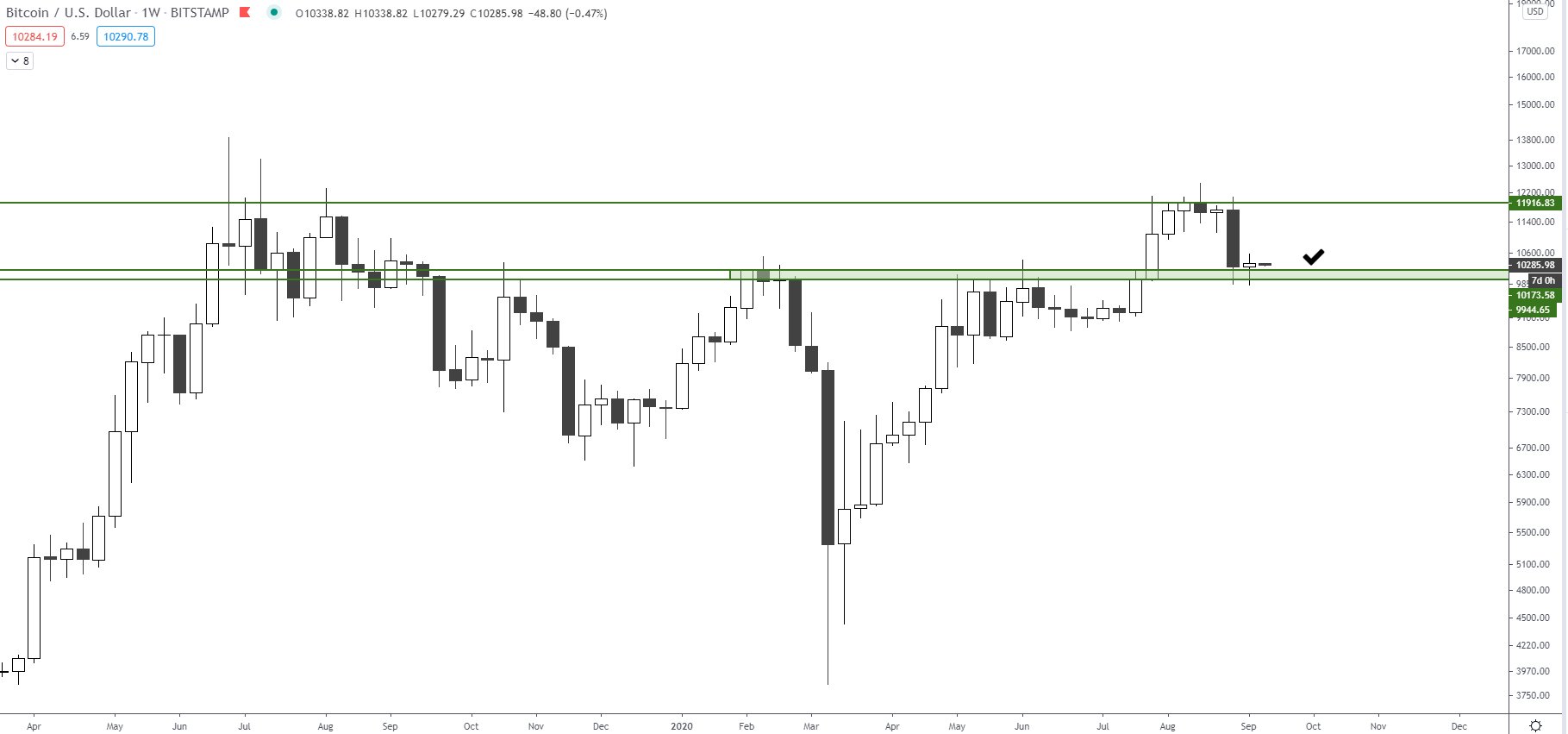 - One trader is leaning bullish on BTC because it managed to hold above the $10,000 support on a weekly time frame.